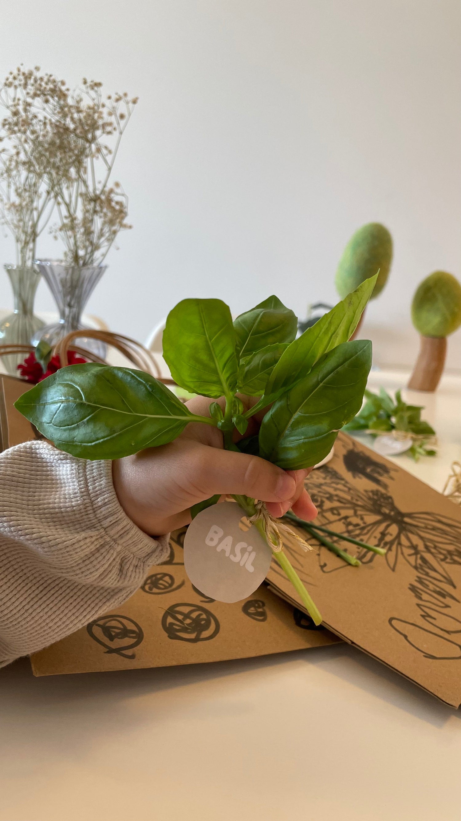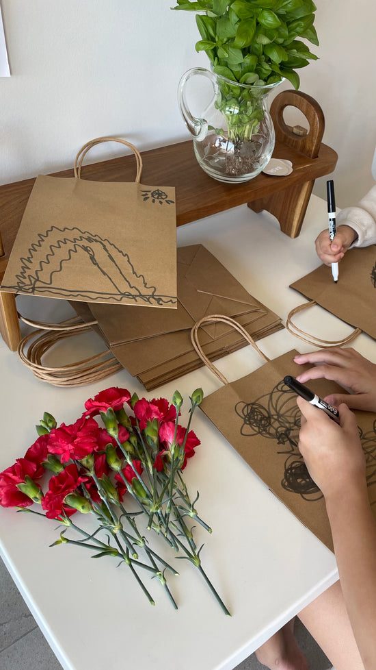 Transforme as sacolas ou caixas do kit em telas: deixe que as crianças decorem e desenhem nas embalagens com canetinhas. Cada kit se torna uma obra de arte pessoal, cheia de carinho!